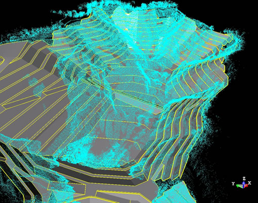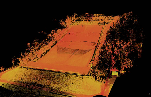 通常200メートル、オーバースキャンモードを使えば350メートルまで計測でき、ダム周辺、がけ崩れ、山間部の測量に最適です。